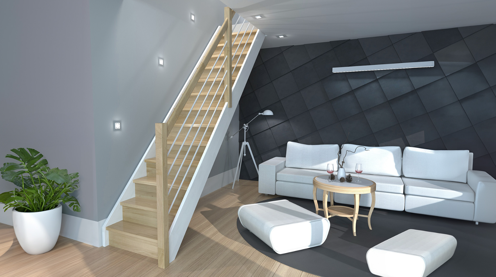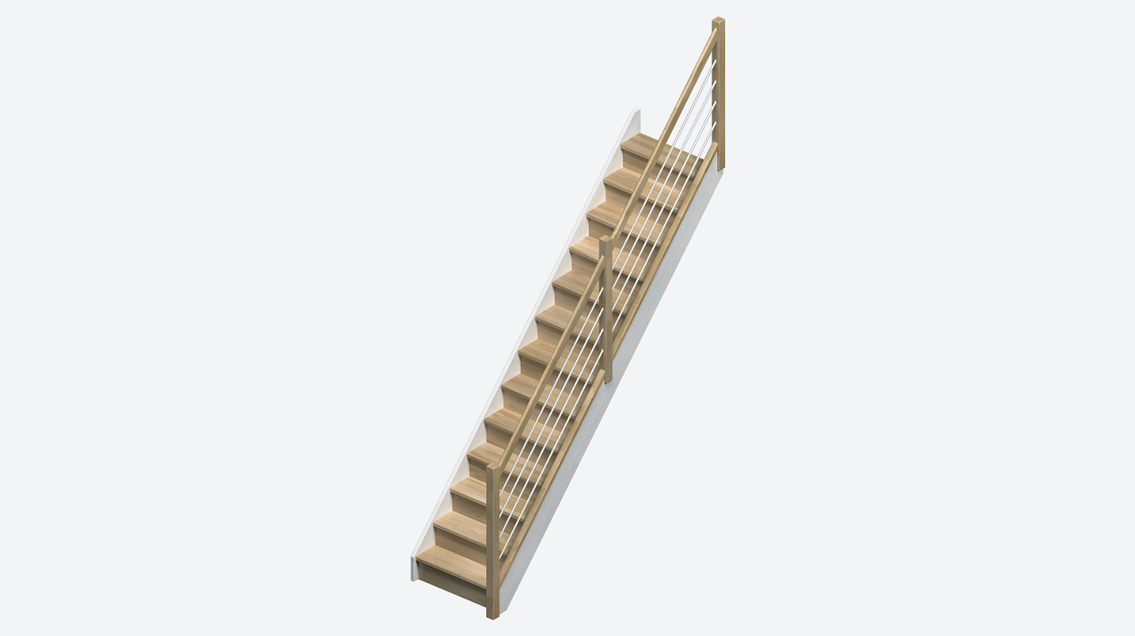 Die Helsinki -Treppe (80 cm), ist eine geräumige, geradlinige Treppe ihrer Klasse. Sie ist aus Eiche gefertigt, verfügt über 13 Stufen und ist wahlweise mit oder ohne Handlauf erhältlich.