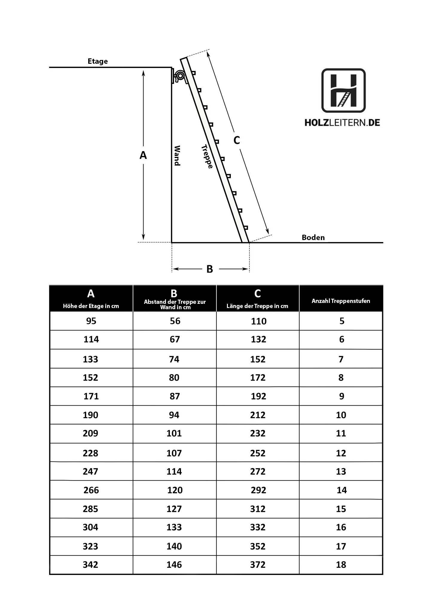 | Steigung (Stufe) der Stufen | 20cm |