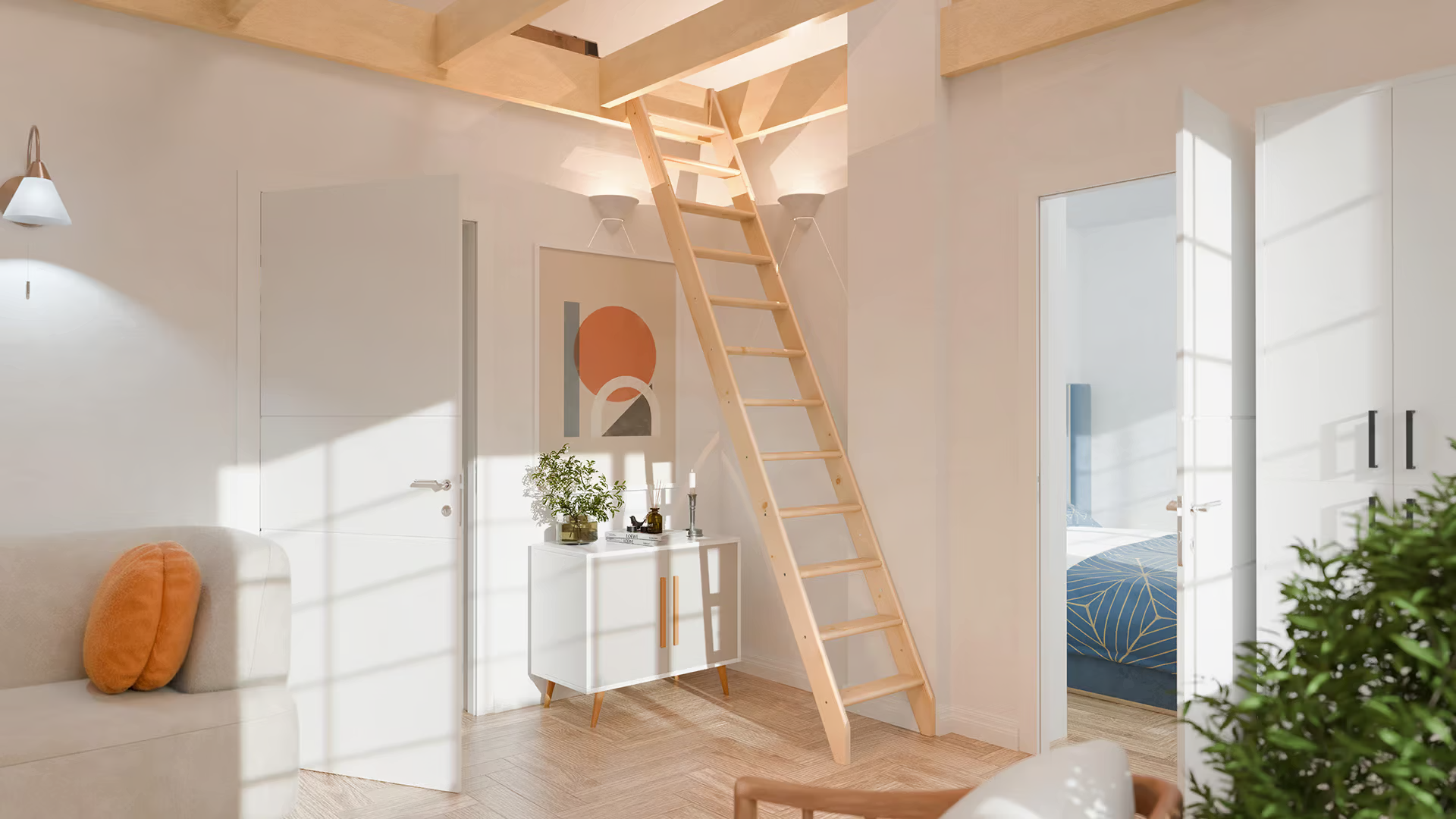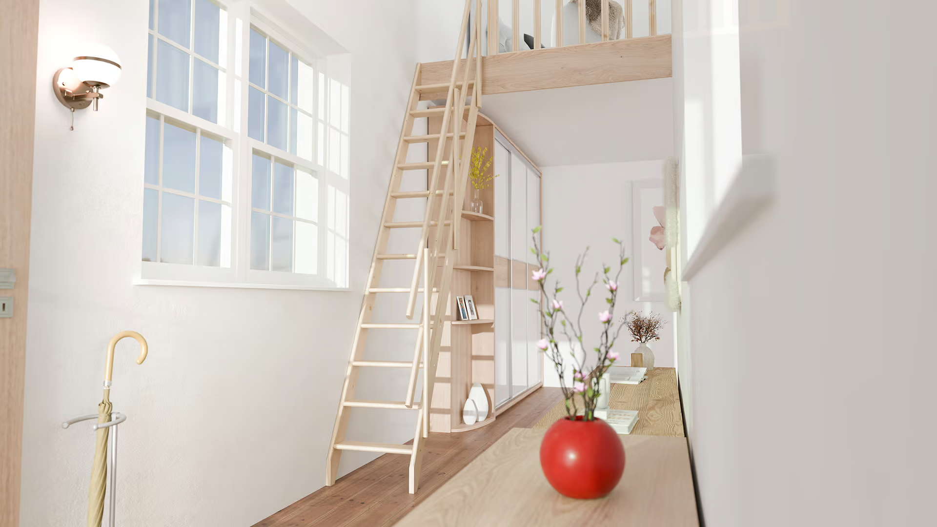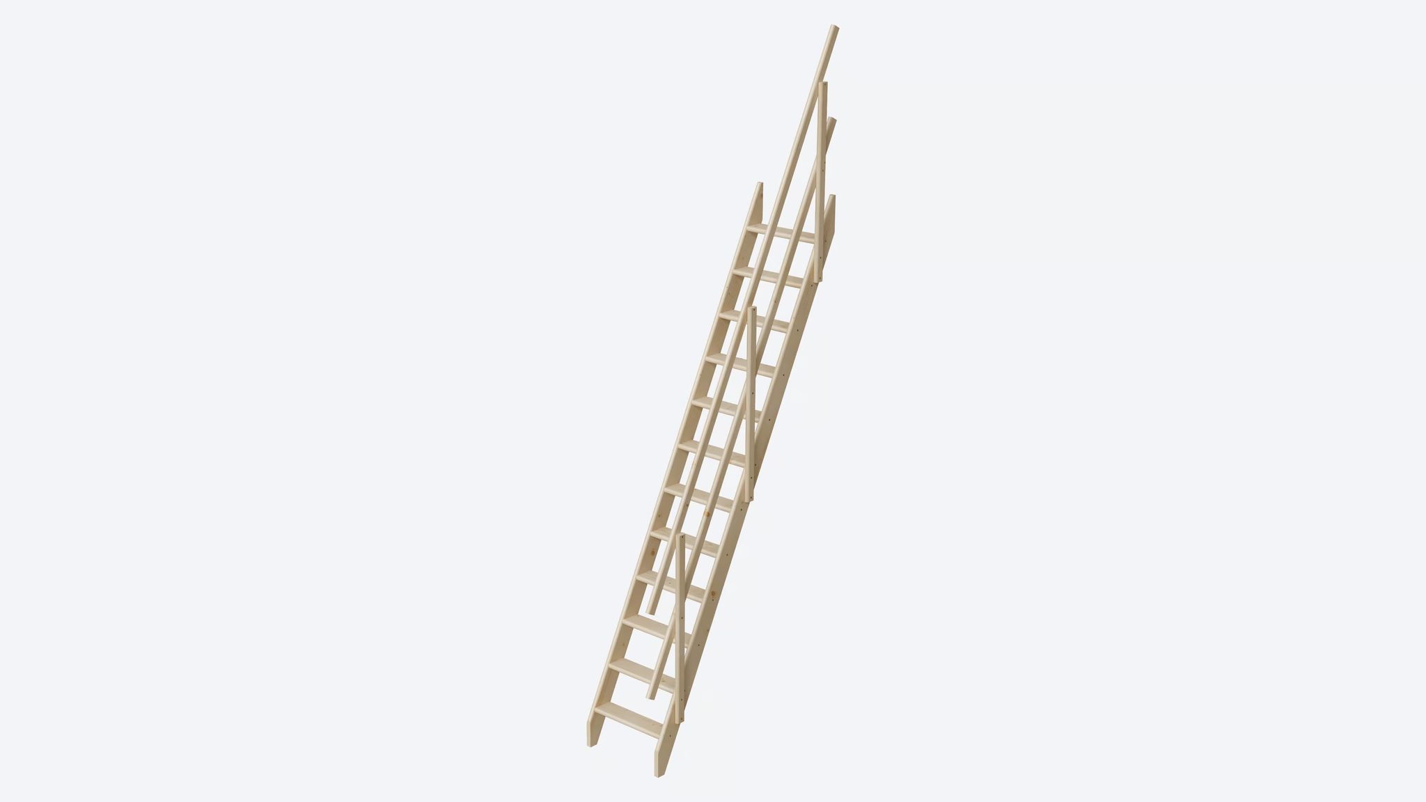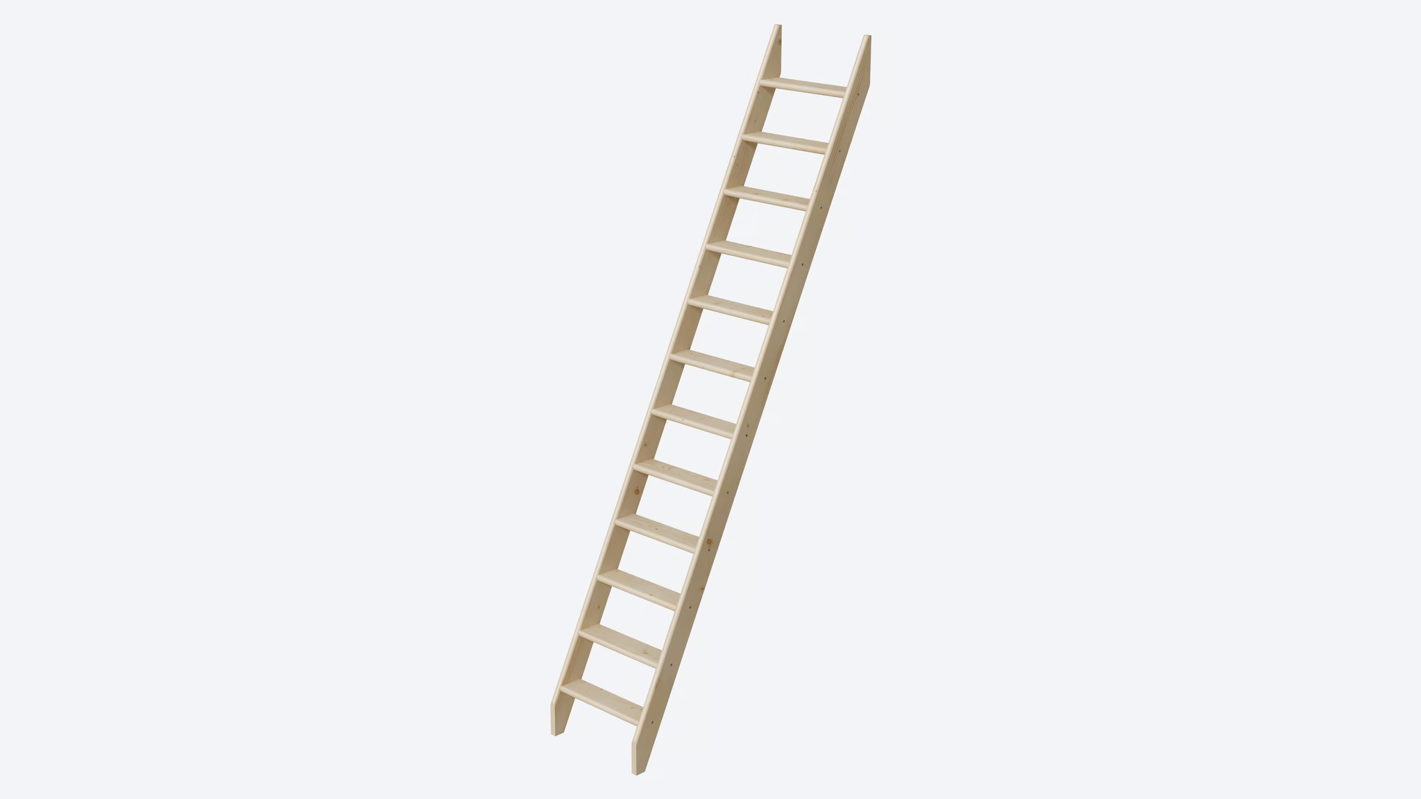 Die Treppe mit einer Höhe von 275 cm ist aus hochwertigem Kiefernholz gefertigt und kann mit bis zu 90 Kilo belastet werden.