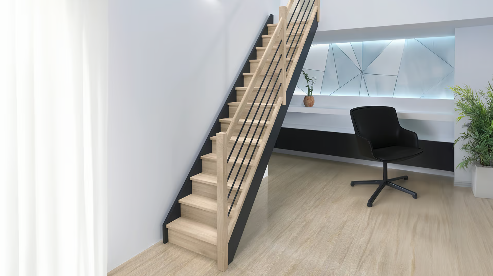 Die Liverpool-Treppe (80 cm), ist eine geräumige, geradlinige Treppe ihrer Klasse. Sie ist aus Eiche gefertigt, verfügt über 13 Stufen und ist wahlweise mit oder ohne Handlauf erhältlich.