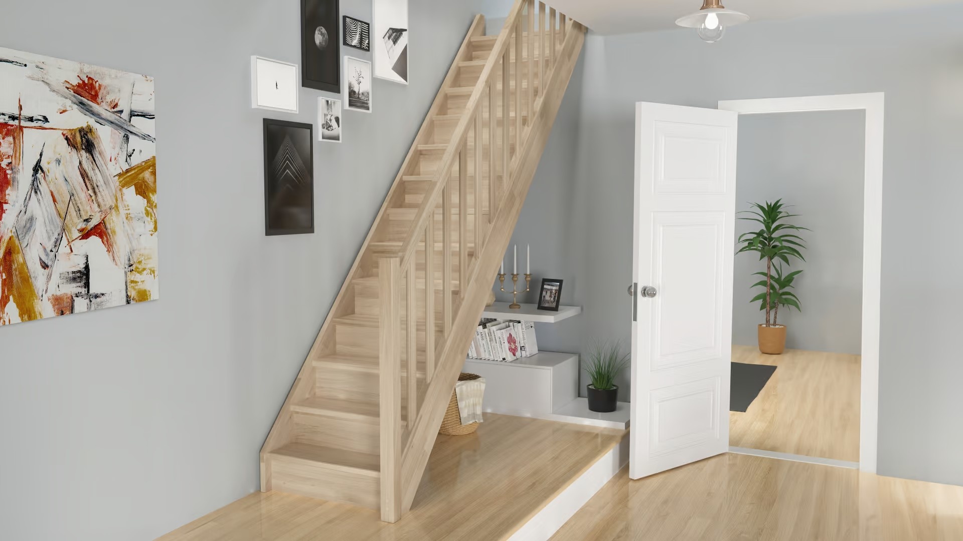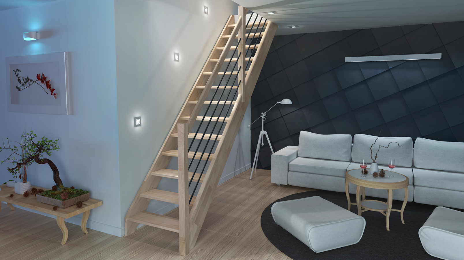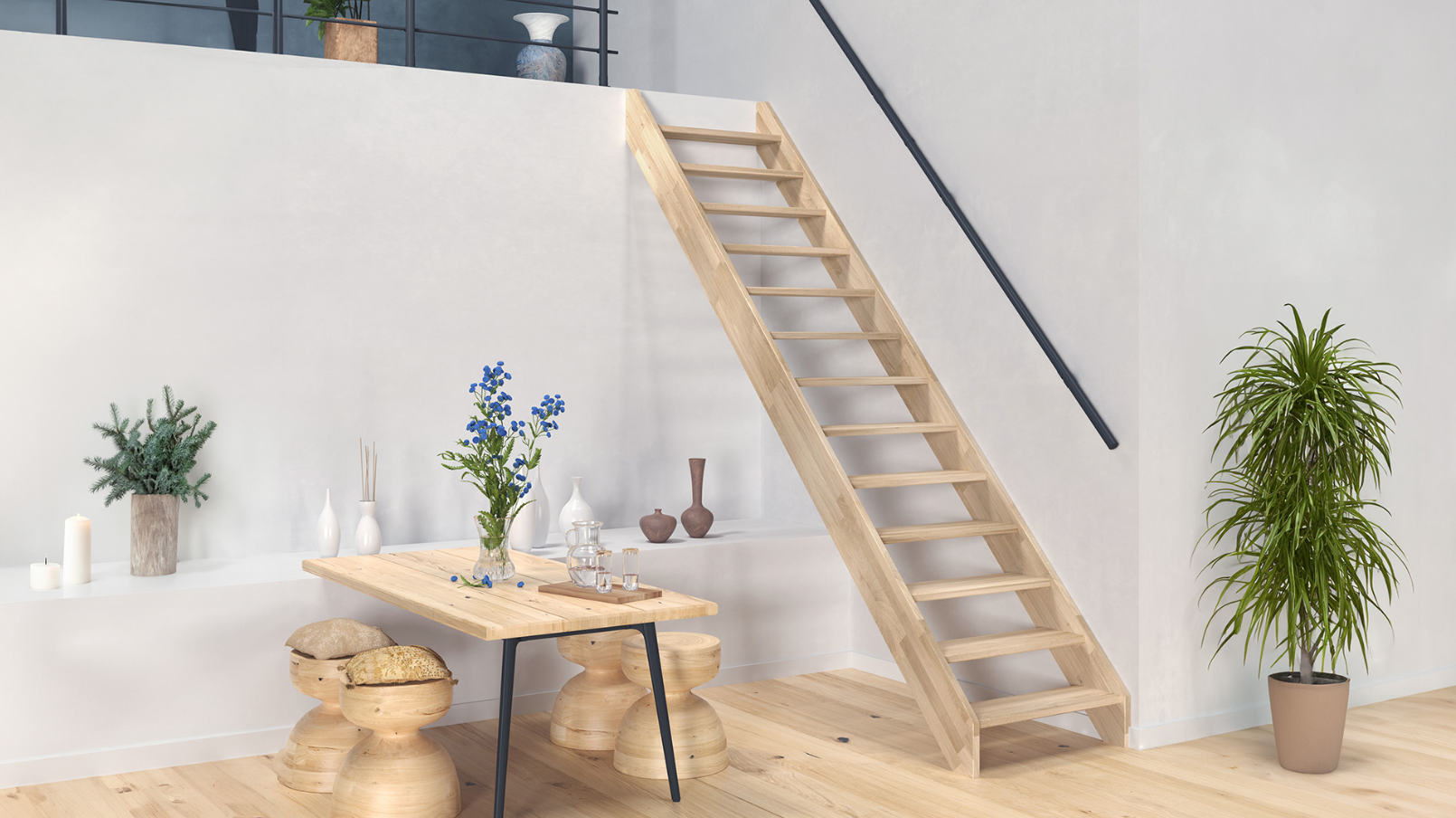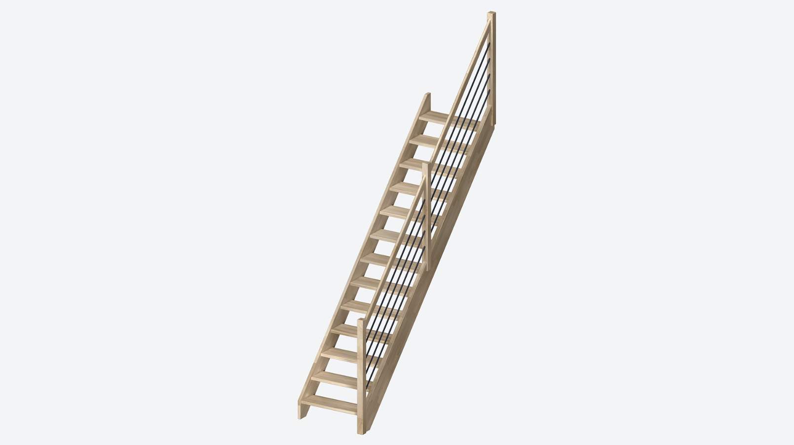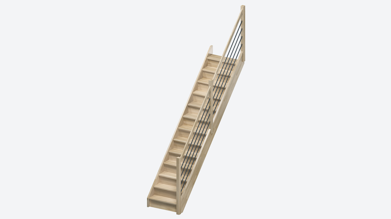 Die Milan-Treppe (80 cm), ist eine geräumige, geradlinige Treppe ihrer Klasse. Sie ist aus Eiche gefertigt, verfügt über 13 Stufen und ist wahlweise mit oder ohne Handlauf erhältlich.
