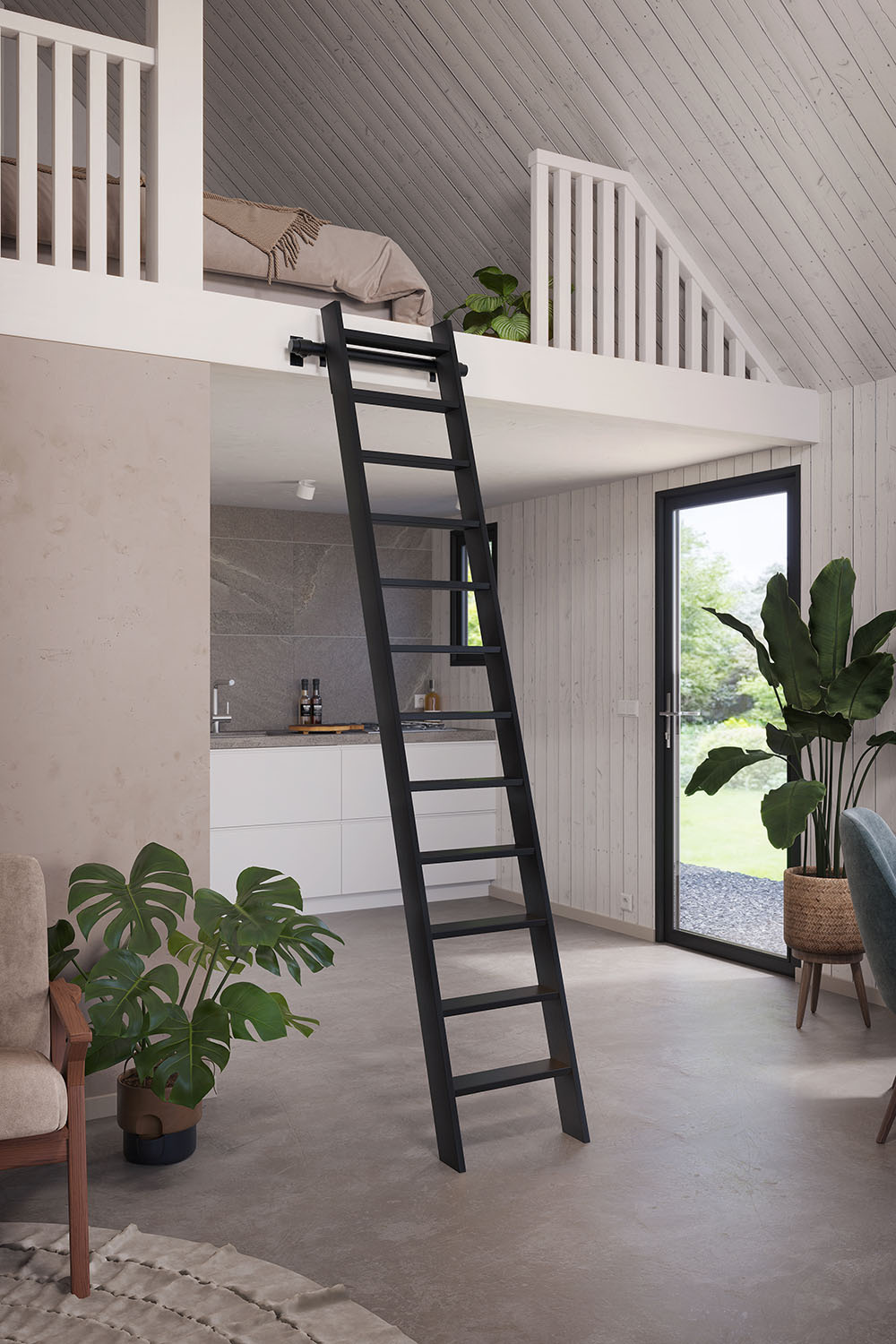 Benötigen Sie eine Treppe, um ein Stockwerk, einen Dachboden oder ein Etagenbett zu erreichen? Eine Müllertreppe aus Buchenholz ist eine Treppe mit flachen Stufen, auf der man bequem laufen kann. Diese schwarze Müllertreppe ist mit einem starken, kratzfreien Komponentenlack versehen, der wenig Pflege erfordert. Buchenholz ist eine feine, gleichmäßige Holzart, die es der Lackschicht ermöglicht, gut an der Treppe zu haften und ihr ein schönes, glattes Aussehen zu verleihen.