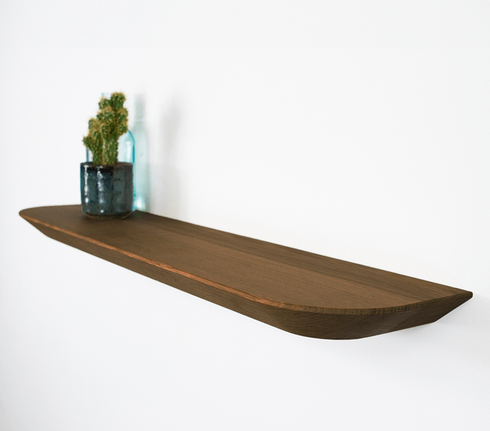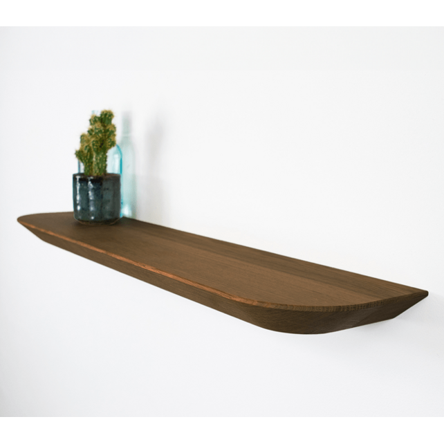 Das schwebende nussbaumfarben lackiert Wandregal ist schlicht lackiert. Der Lack sorgt dafür, dass das Eichenholz gut geschützt ist. Leicht zu reinigen und sauber zu halten.
